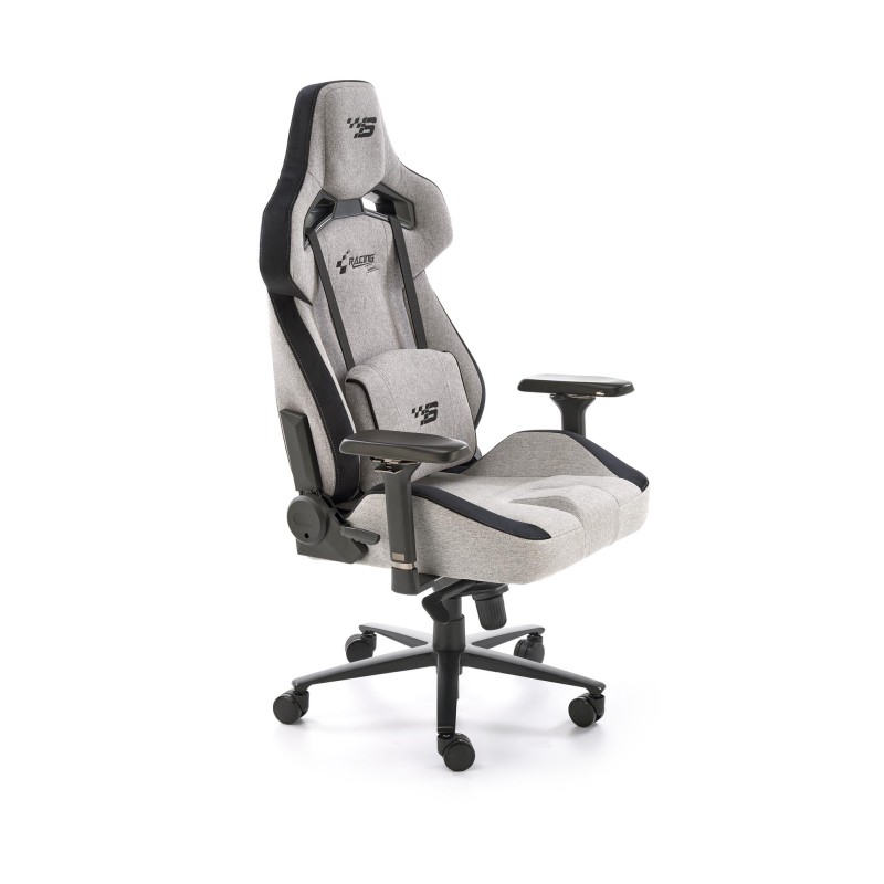 Fotel ALISTER wyróżnia się dbałością o detale, które wpływają na codzienny komfort. Wyposażony jest w regulowane podłokietniki, które można dostosować do indywidualnych potrzeb, odciążając barki i łokcie podczas pracy przy klawiaturze. Wizytówką modelu jest jednak aluminiowa podstawa. Jej srebrzysty, metaliczny połysk doskonale kontrastuje z szaro-czarną tapicerką, nadając fotelowi lekkości, nowoczesnego sznytu i premium charakteru. Aluminium gwarantuje również wysoką wytrzymałość i stabilność konstrukcji.