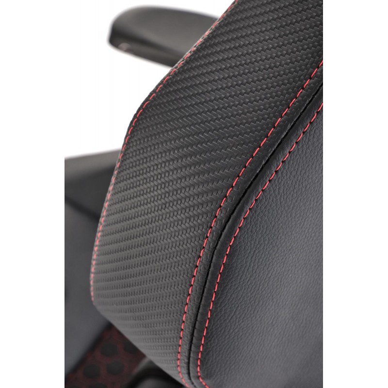 - Ergonomiczne oparcie: Wyprofilowane kształtem, dopasowuje się do naturalnych krzywizn ciała, a dwukolorowa tapicerka z eko skóry nadaje mu głębi i charakteru premium.