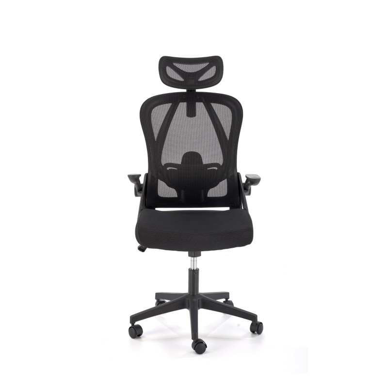 Fotel gabinetowy NEGRO – czarna elegancja, tkanina membranowa i siatka z aktywnym podparciem lędźwiowym