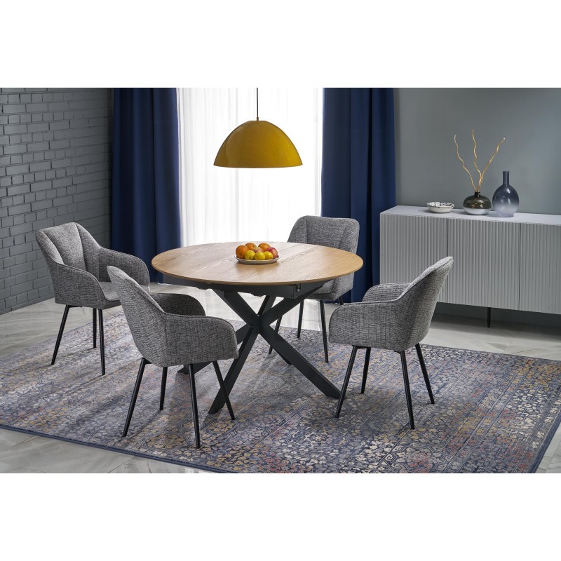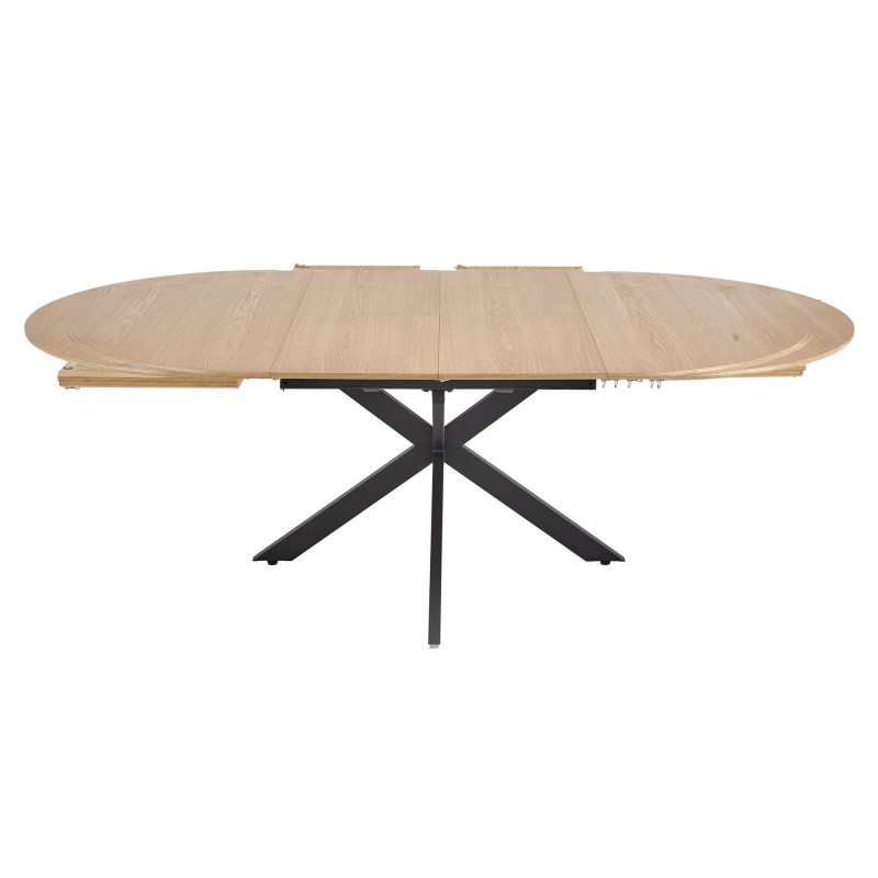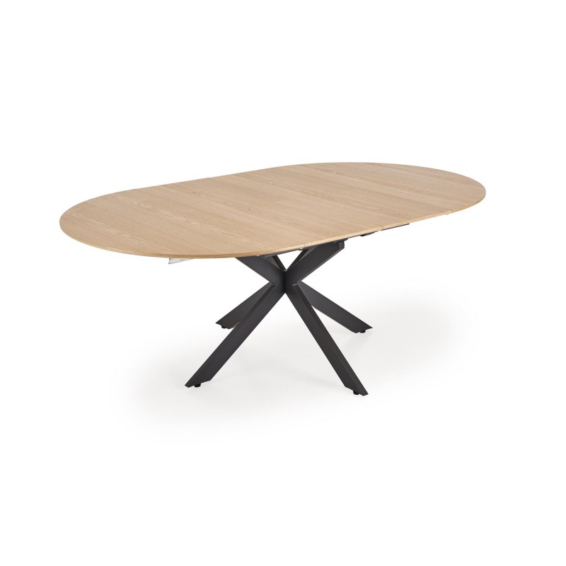 wymiary: 120-200/120/75 cm, stół rozkładany, materiał: MDF + okleina naturalna / stal malowana proszkowo, kolor: blat - naturalny, nogi - czarny