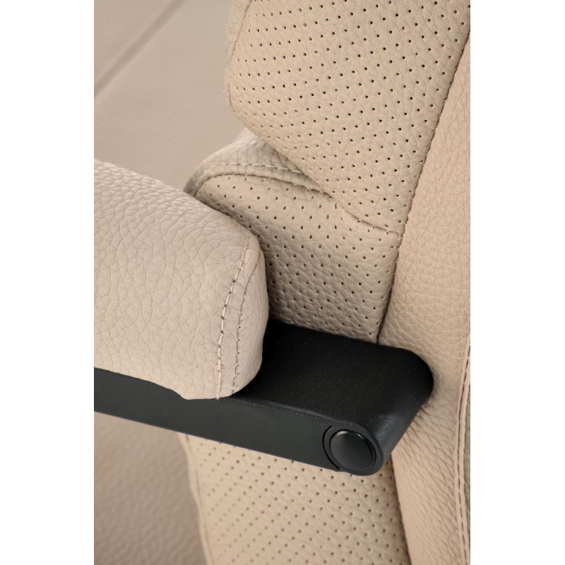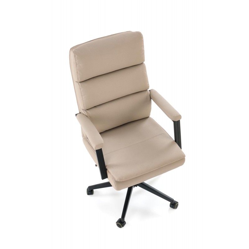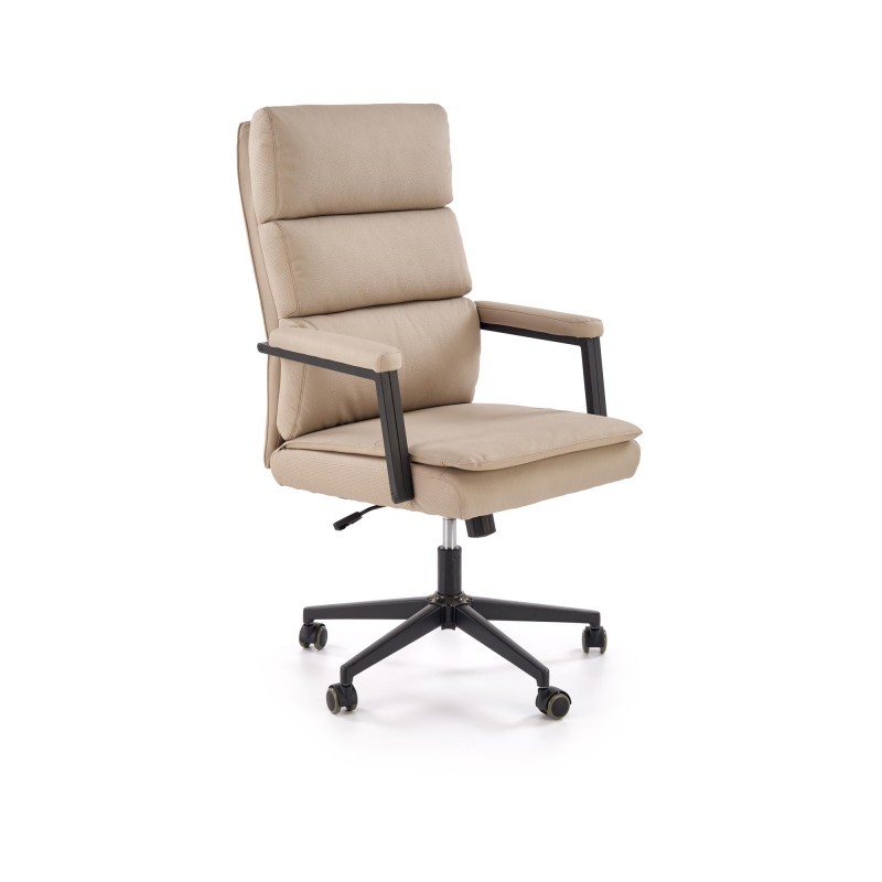 Fotel biurowy to kwintesencja doskonałego stylu i ponadprzeciętnej jakości. Fotel komputerowy dostępny jest w uniwersalnym, beżowym kolorze (tapicerowany skórą ekologiczną ) połączonym z czarną konstrukcja - idealnie pasuje zarówno do nowoczesnych, jak i klasycznie urządzonych biur i pokoi.