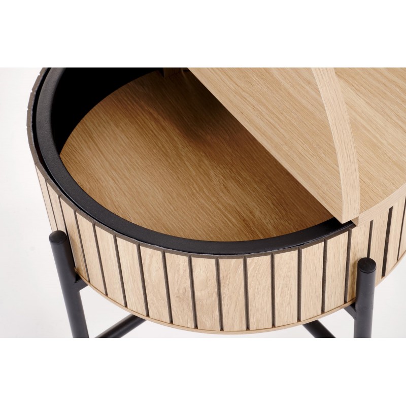 wymiary: fi67/50 cm, fi40/36 cm, zestaw 2 ław, materiał: MDF okleinowany - melamina / stal malowana proszkowo, kolor: naturalny - czarny