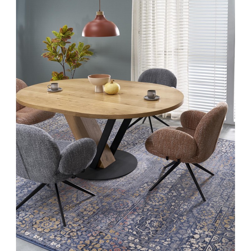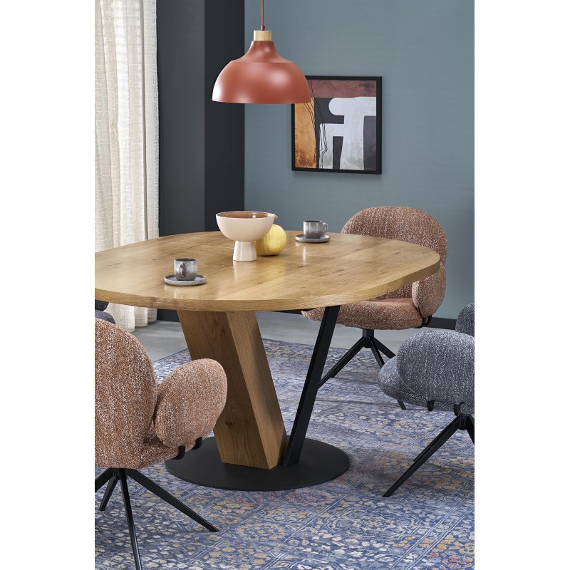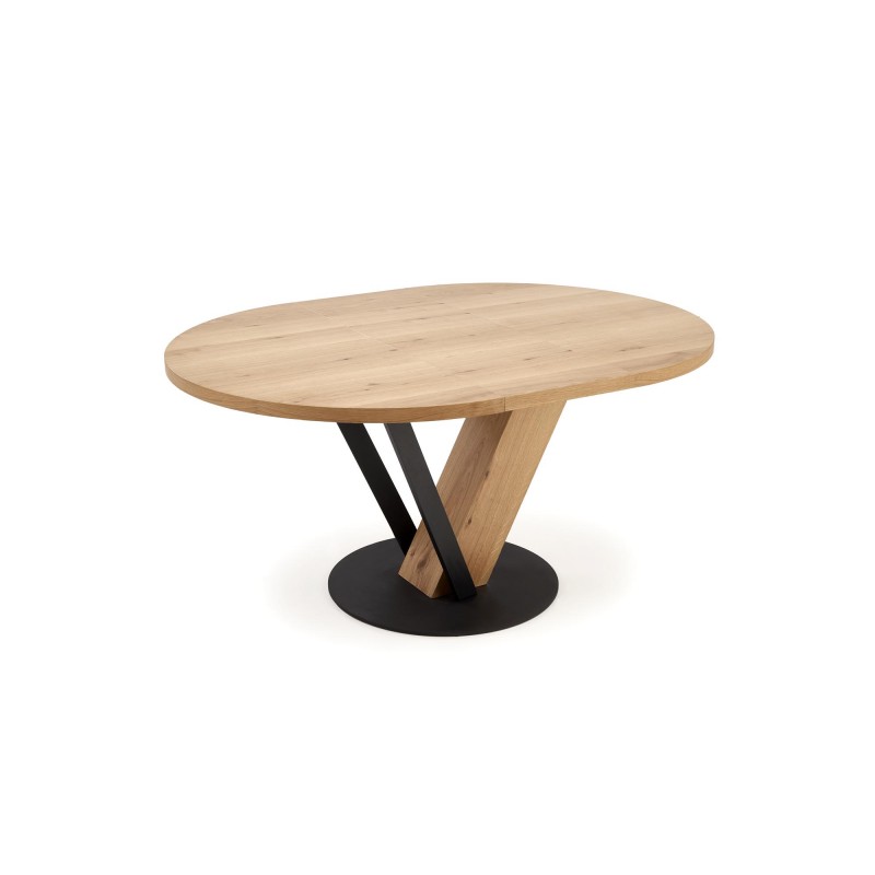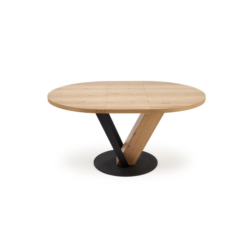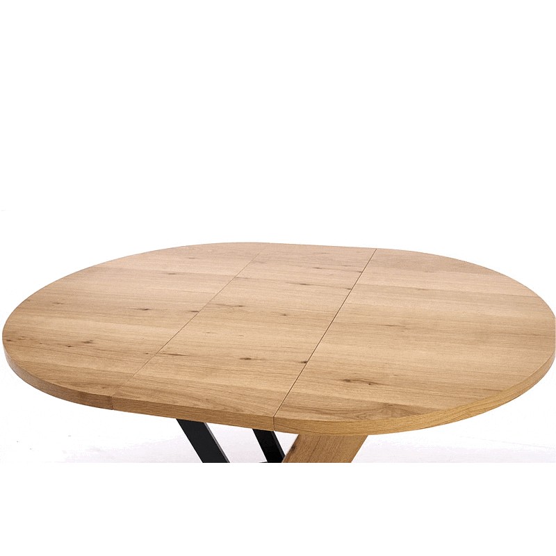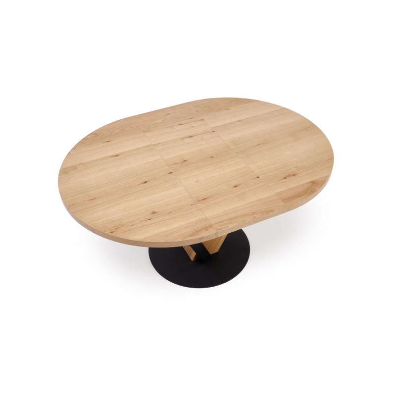 wymiary: 120-160/120/78 cm, stół rozkładany, materiał: MDF + okleina naturalna ( dębowa ) / stal malowana proszkowo, kolor: blat – naturalny, nogi - czarny / naturalny