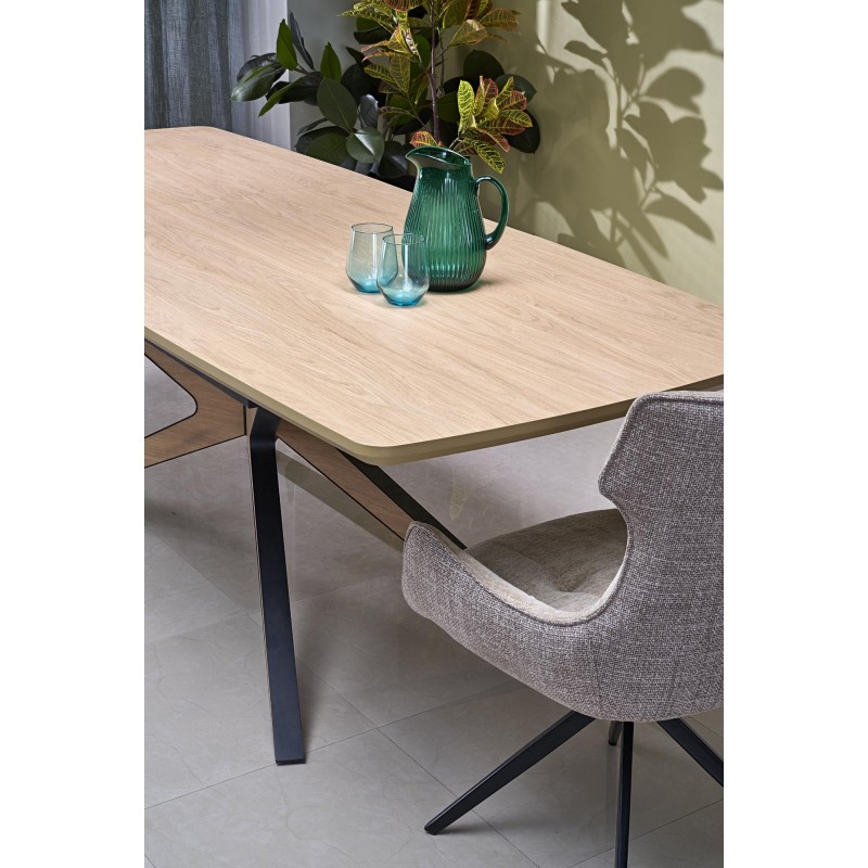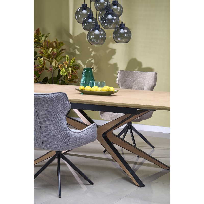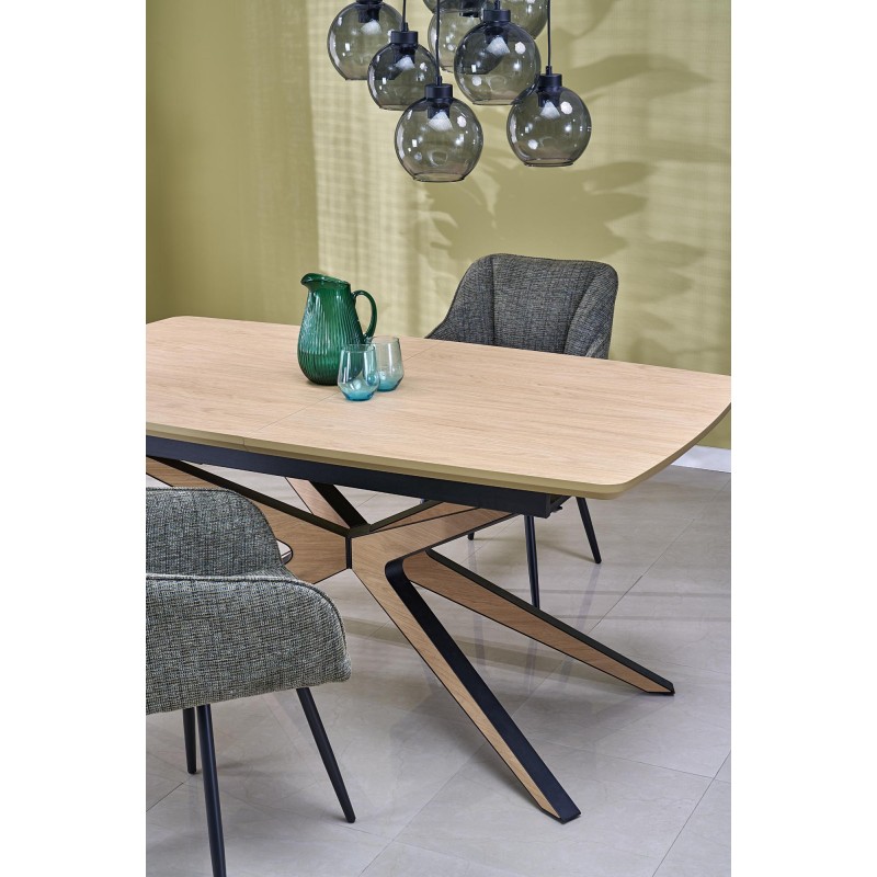wymiary: 160-220/90/76 cm, stół rozkładany, materiał: MDF okleinowany - melamina / stal malowana proszkowo, kolor: blat – naturalny, nogi - czarny / naturalny