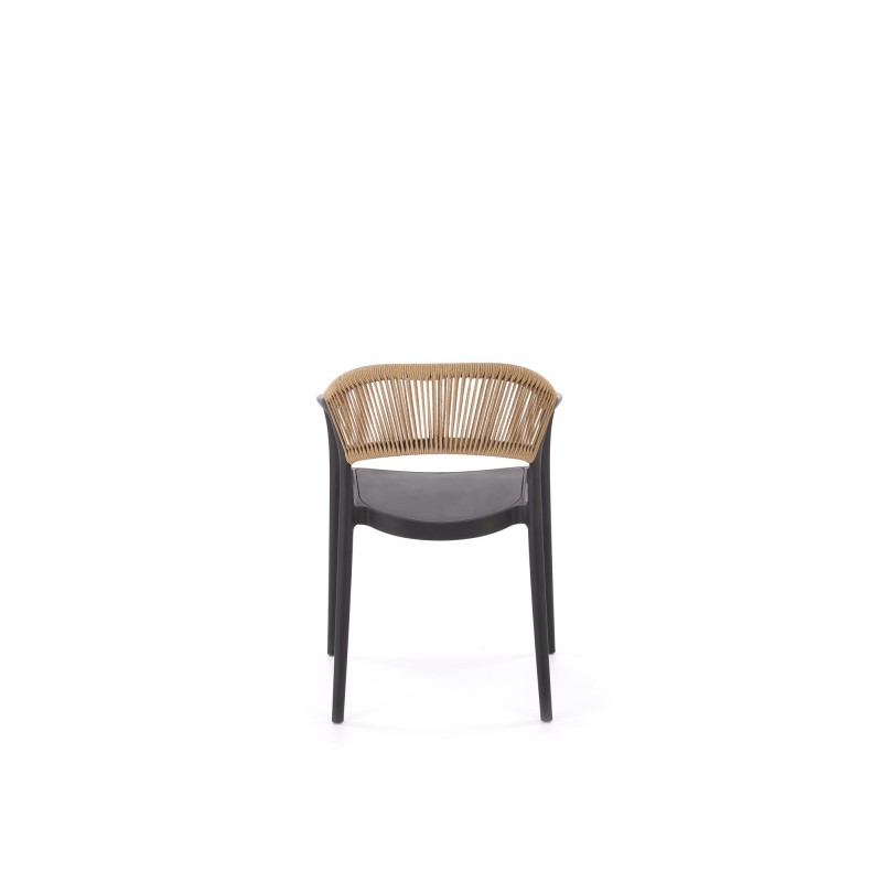Krzesło K582 w kolorze czarny / naturalny to oryginalny model w stylu boho o szerokości 56 cm. Oparcie wykonane ze sznurka w naturalnym odcieniu nadaje krzesłu unikalnego charakteru, a siedzisko i stelaż z polipropylenu w kolorze czarnym zapewniają trwałość i łatwość czyszczenia. Twarde siedzisko bez tapicerki oraz możliwość sztaplowania czynią je praktycznym rozwiązaniem do jadalni, na taras, do ogrodu oraz przestrzeni komercyjnych.