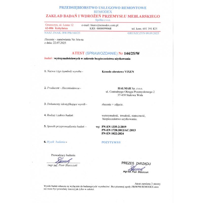 - możliwość blokady siedziska i oparcia w kilku pozycjach. Funkcja ta pozwala na przyjęcie odpowiedniej pozycji przy biurku.