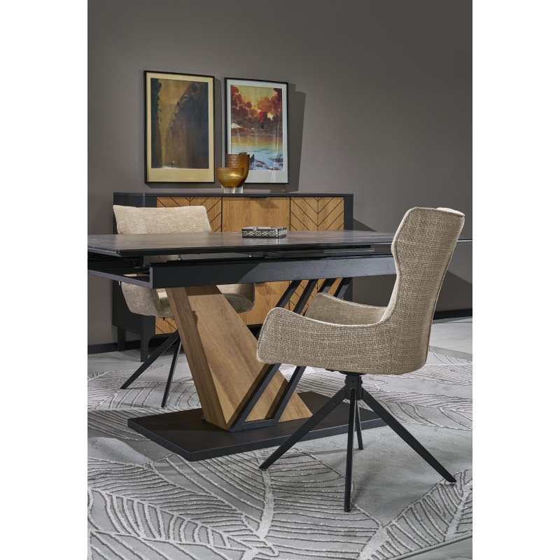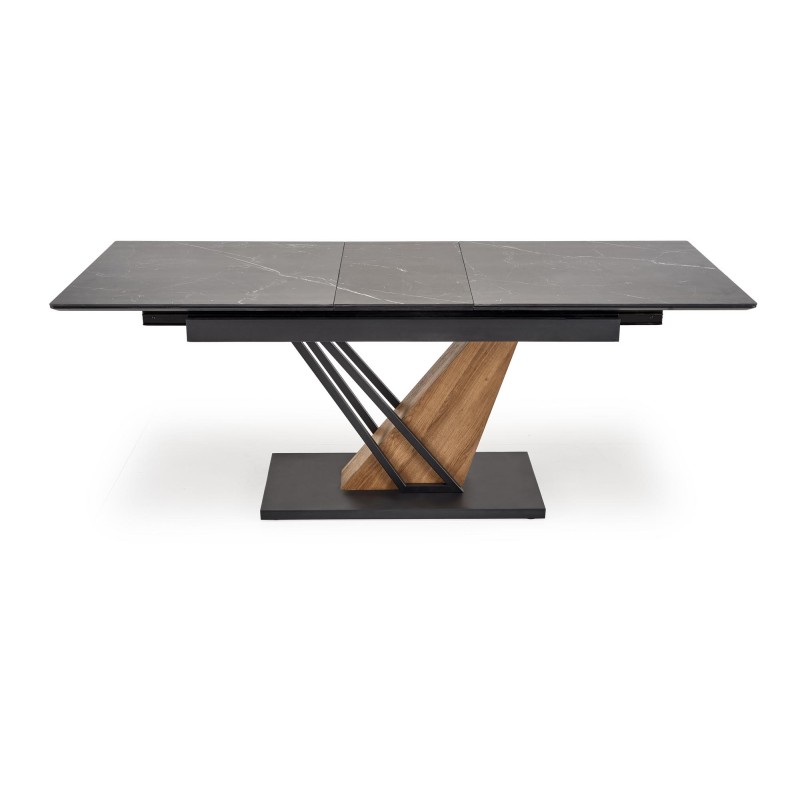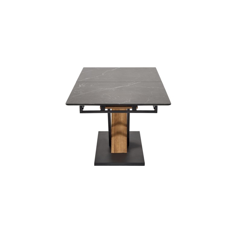 VOLANT 140 stół rozkładany, blat - czarny marmur, nogi - dąb złoty / czarny