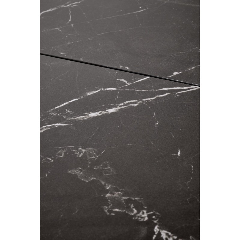 wymiary: 160-200/90/76 cm, stół rozkładany, materiał: spiek / MDF lakierowany / MDF okleinowany / stal malowana proszkowo, kolor: blat - czarny marmur, nogi - dąb złoty / czarny