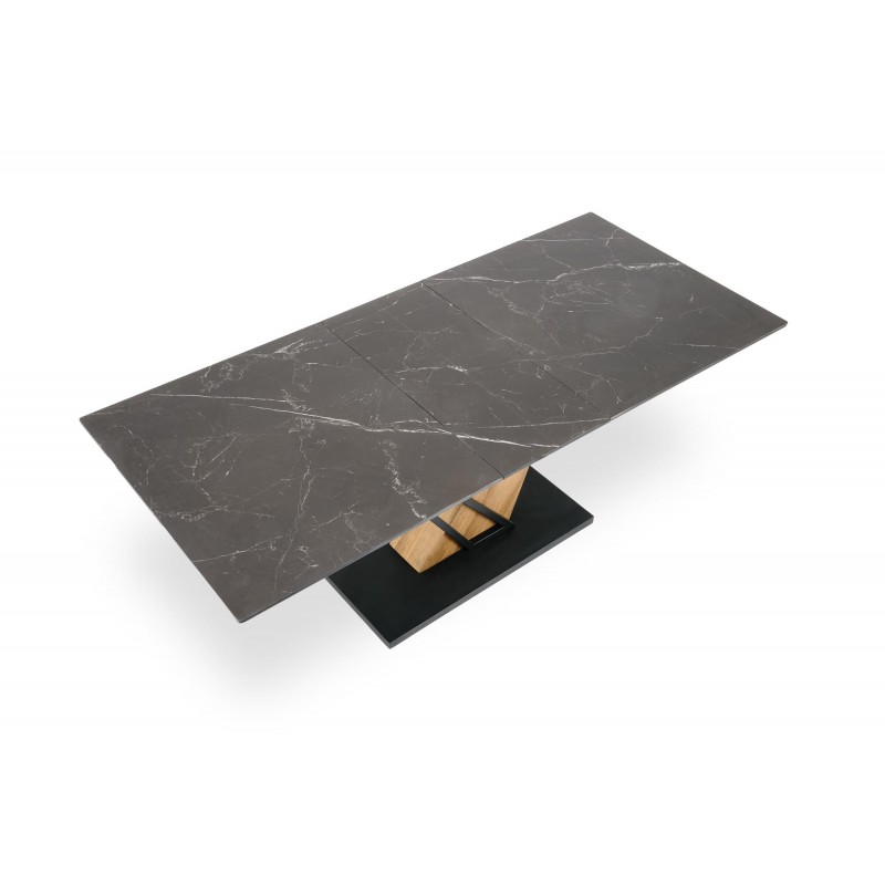 VOLANT 160 stół rozkładany, blat - czarny marmur, nogi - dąb złoty / czarny