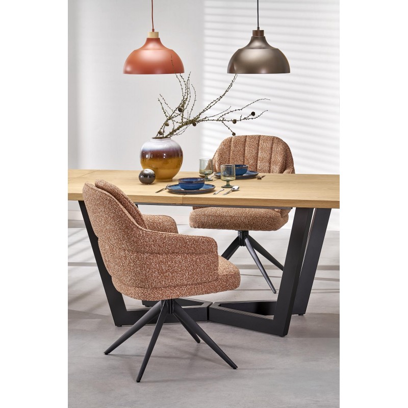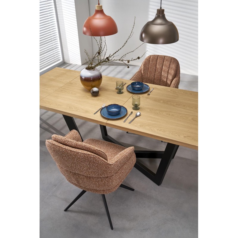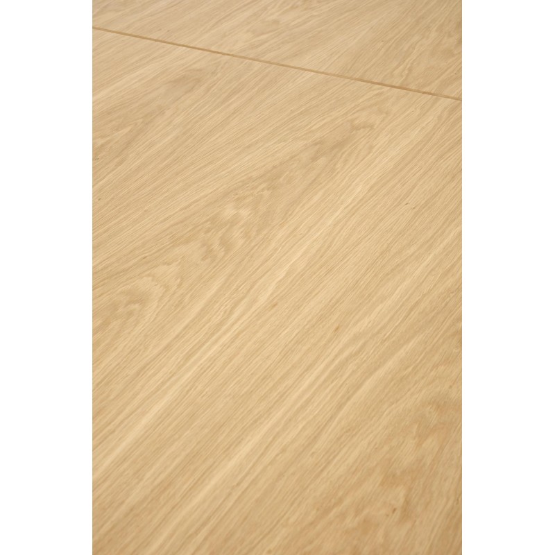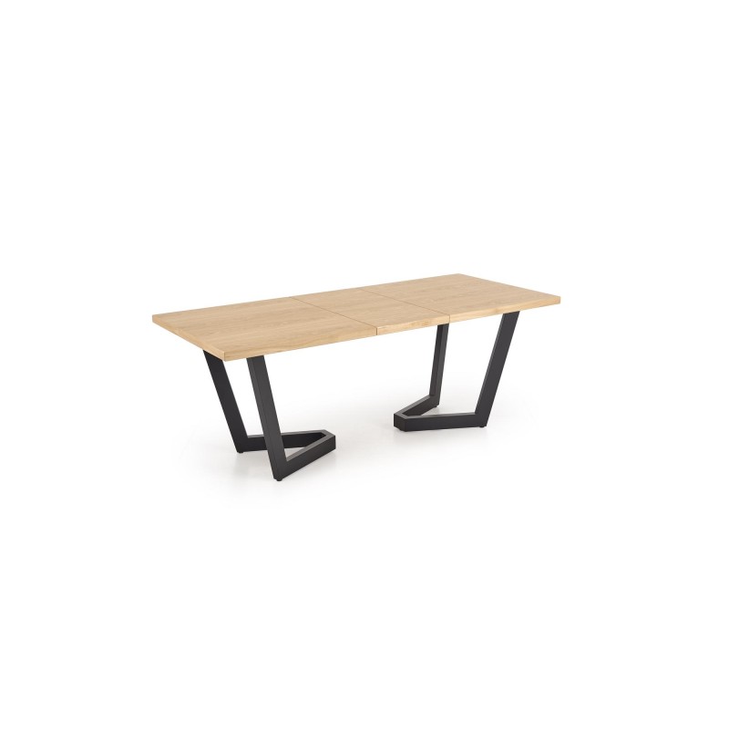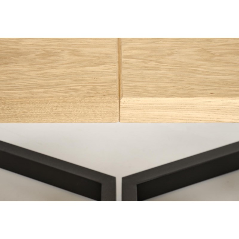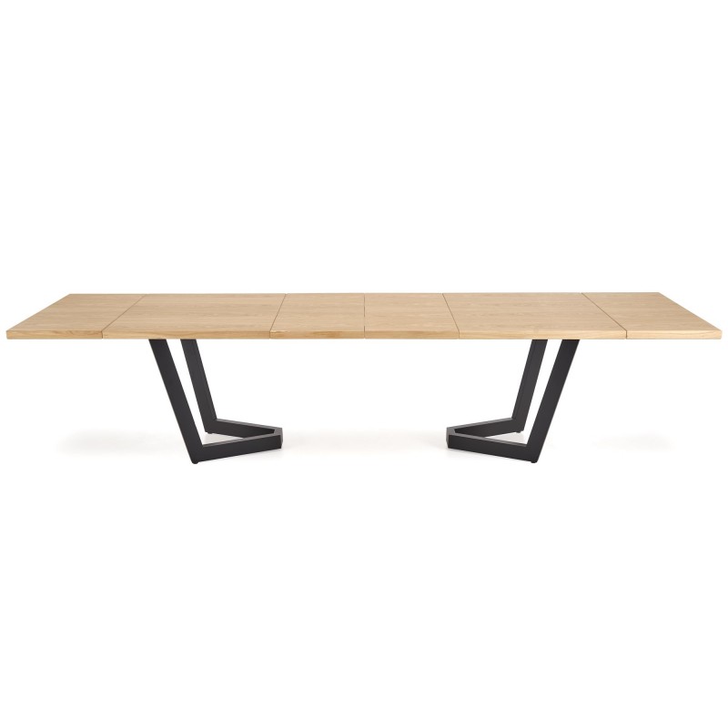 stół rozkładany, wymiary: 160-250(340)/90/77 cm, materiał: blat - płyta fornirowana, na obrzeżach drewno lite, nogi - stal malowana proszkowo, kolor: blat – dąb naturalny, nogi - czarny, * w opcji przedłużki do blatów MASSIVE 2 (wymiary: 45x90 cm - 2 szt.