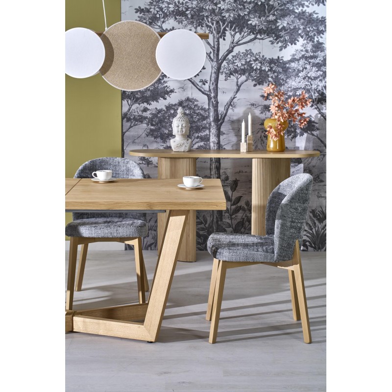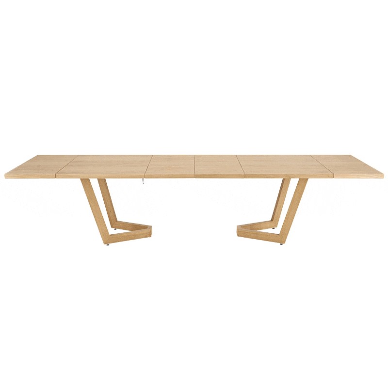 stół rozkładany, wymiary: 160-250(340)/90/77 cm, materiał: blat - płyta fornirowana, na obrzeżach drewno lite, nogi - drewno lite dębowe, kolor: blat – dąb naturalny, nogi - dąb naturalny, * w opcji przedłużki do blatów MASSIVE 3 (wymiary: 45x90 cm - 2 szt.)