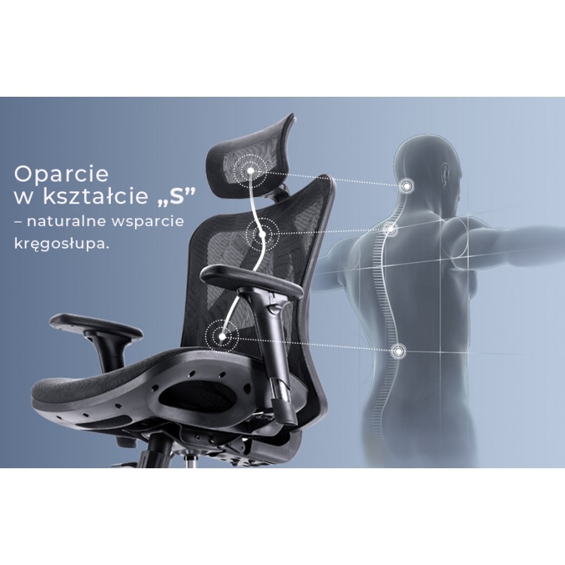 - Ruch synchroniczny 2:1: Oparcie i siedzisko poruszają się w zsynchronizowanych proporcjach, zachęcając do naturalnej zmiany pozycji i odciążając kręgosłup („fotel pracuje razem z Tobą").