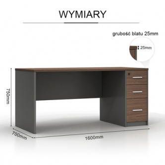 - blat wykonany z płyty MDF o grubości 25mm wykończony melaminą