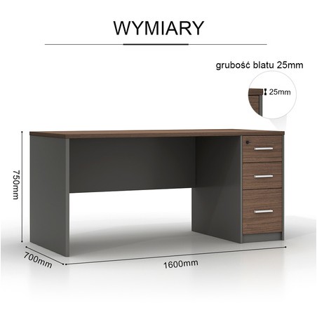Stylowe, solidne i funkcjonalne biurko do biura i home office. Blat 160 × 70 cm zapewnia wygodną przestrzeń pracy, a zestawienie ciemnego dębu (teak) z matową szarością dodaje wnętrzu charakteru.