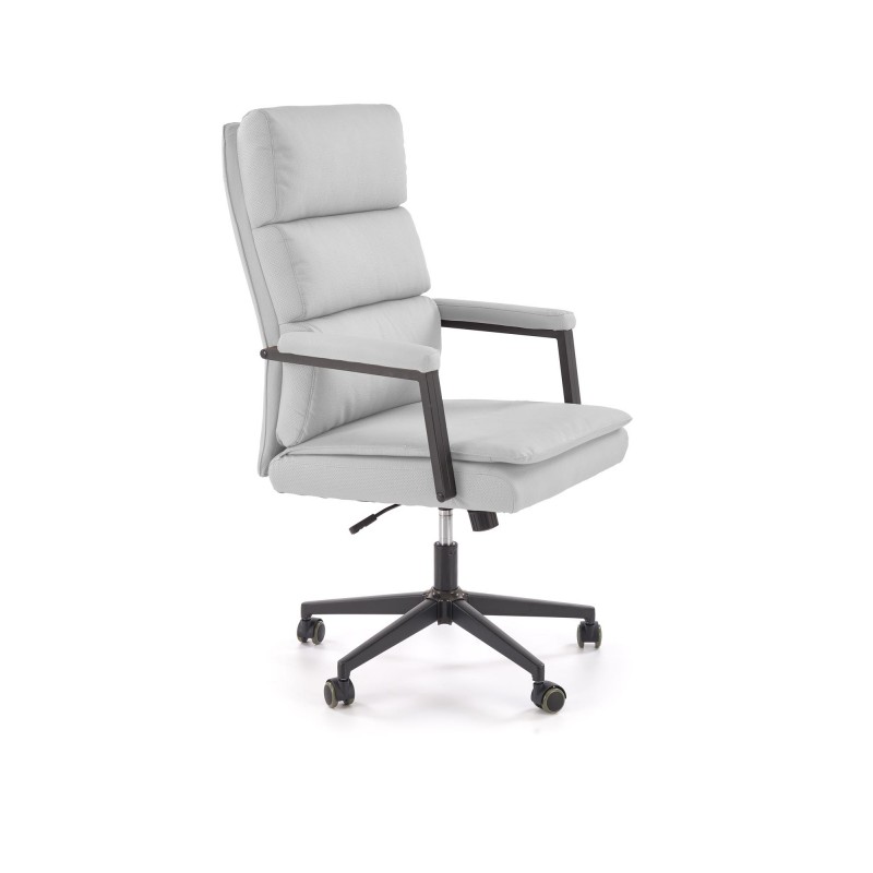 Fotel biurowy to kwintesencja doskonałego stylu i ponadprzeciętnej jakości. Fotel komputerowy dostępny jest w uniwersalnym, szarym kolorze (tapicerowany skórą ekologiczną ) połączonym z czarną konstrukcja - idealnie pasuje zarówno do nowoczesnych, jak i klasycznie urządzonych biur i pokoi.