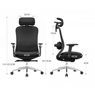 - Podłokietniki 5D: Pełen zakres regulacji w pięciu płaszczyznach: góra/dół (5 cm), przód/tył (4 cm), ustawienia boczne, obrót nakładki oraz obrót całego ramienia o 360°. Pozwala to na idealne ułożenie dłoni i barków, eliminując napięcia w górnych partiach ciała.