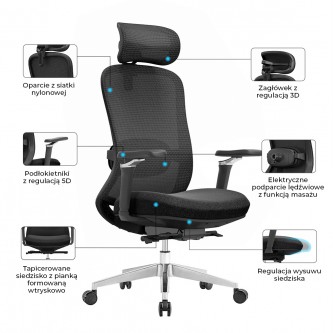 Fotel ergonomiczny ANGEL fizjO – elektryczny masaż lędźwi, mechanizm Elite-Synchro i regulacje 5D
