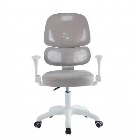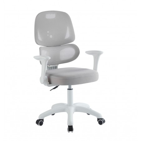 Krzesło młodzieżowe FB28 w kolorze szarym to atrakcyjne i praktyczne rozwiązanie do nowoczesnego pokoju dziecka. Model wyróżnia się miękkim, tapicerowanym siedziskiem z szarej tkaniny oraz przewiewnym, szarym oparciem z siatki, co zapewnia komfort podczas nauki. Stylowa biała podstawa z tworzywa PP i białe, stałe podłokietniki nadają mu lekkości i uniwersalnego wyglądu. Wyposażone w podstawowy mechanizm z płynną regulacją wysokości. Unikalną cechą są podnoszone (składane) podłokietniki, które ułatwiają dosunięcie krzesła do biurka. Kompaktowe wymiary (szer. 60 cm) idealnie wpisują się w mniejsze przestrzenie. FB28 to połączenie wygody, bezpieczeństwa i nowoczesnego designu.