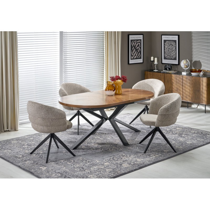 wymiary: 180-300/100/74 cm, stół rozkładany, materiał: MDF + okleina naturalna / stal malowana proszkowo, kolor: blat - orzechowy, noga - czarny