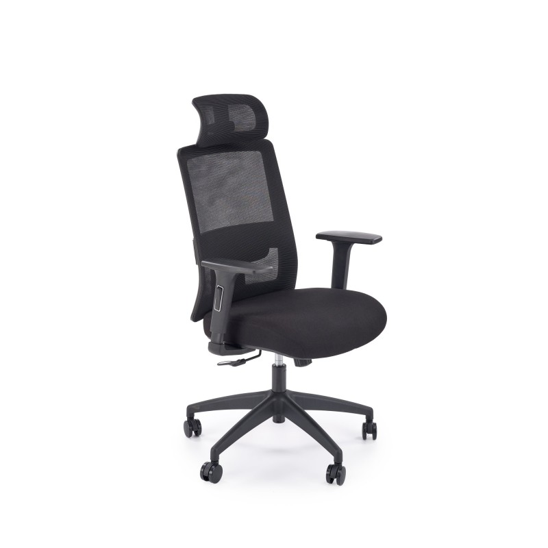 Fotel gabinetowy SWIFT w kolorze czarnym to zaawansowany model ergonomiczny z profesjonalnym mechanizmem MULTIBLOCK. Wyposażony w regulowaną wysokość oparcia, regulowany punkt podparcia pleców, regulowane podłokietniki oraz zagłówek z regulacją wysokości. Tapicerka z tkaniny i siatki zapewnia komfort i odpowiednią wentylację. Stabilna metalowa podstawa wytrzymuje obciążenie do 120 kg. Idealny do biura i gabinetu.