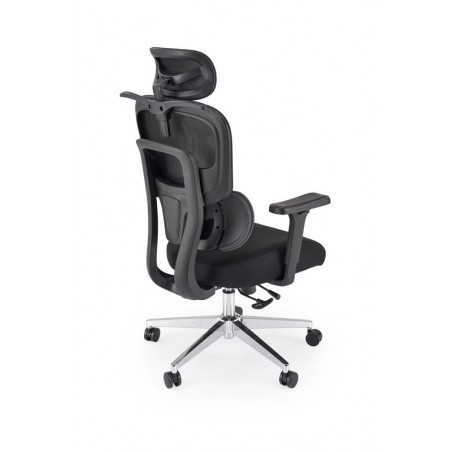 Fotel BOOSTER w klasycznym czarnym kolorze z metalowymi akcentami prezentuje się niezwykle profesjonalnie. To mebel, który podkreśli prestiż gabinetu kadry zarządzającej oraz nowoczesnego biura. Dzięki punktowi podparcia pleców (wsparcie lędźwiowe), każda godzina spędzona w tym fotelu jest inwestycją w Twoje zdrowie.
