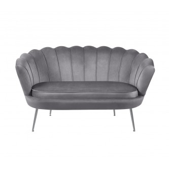 Sofa 2-osobowa AMORINO XL w eleganckim kształcie muszelki. Tapicerka z miękkiego velvetu w kolorze szarym, stelaż z metalu chromowanego w kolorze srebrnym. Wymiary: 138 × 74 × 79 cm. Idealna do salonu w stylu glamour i modern classic. Wyjątkowy komfort i luksusowy design w jednym!