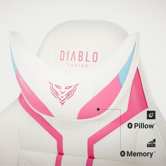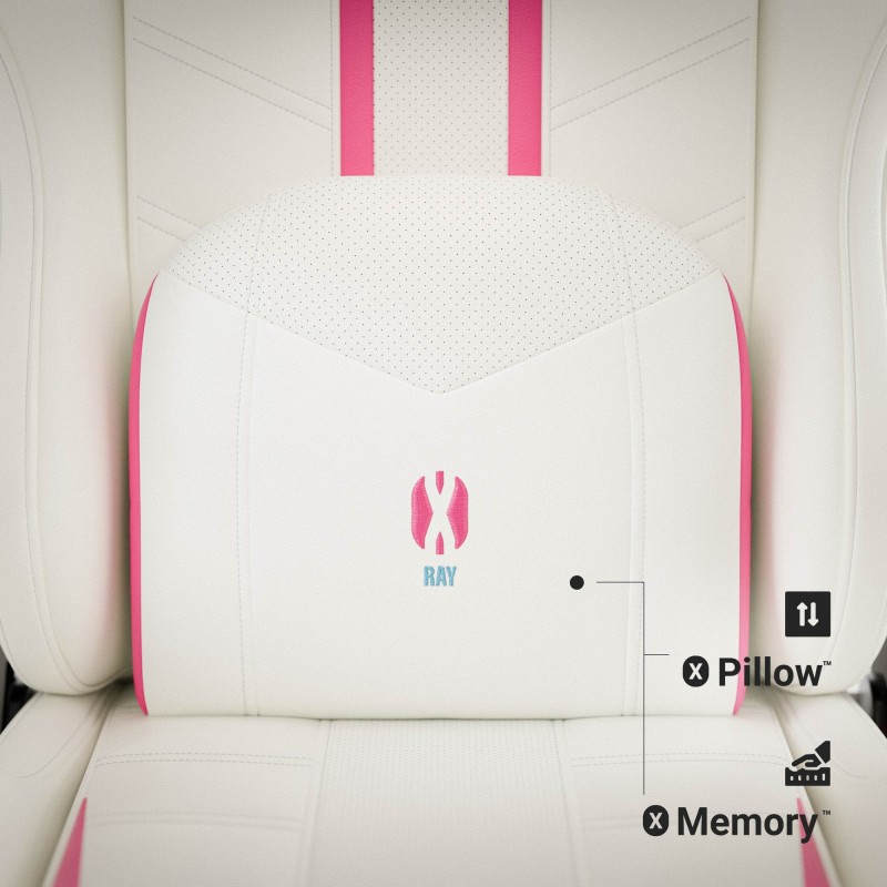 Fotel gamingowy Diablo X-Ray 2.0 w kolorze biało-różowym. Tapicerka z ekoskóry HDS™ i HDS™ Air. Technologia ProSpine Support™, pianka HR z warstwą Dual Layer™. Poduszki Memory Foam, magnetyczny zagłówek. Podłokietniki Armtech™ Hybrid. Oparcie do 140°. Obciążenie do 140 kg. Idealny do grania, pracy, relaksu!
