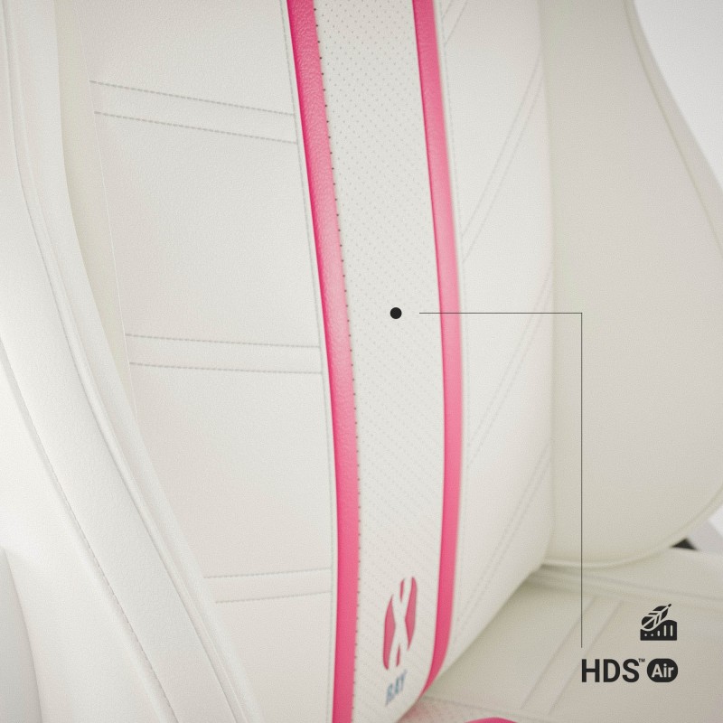 Tapicerkę modelu X-Ray tworzy perforowana ekoskóra HDS™ Air oraz niezastąpiona ekoskóra HDS™. Oryginalna kombinacja przyczynia się do wybitnego designu i niezbędnej cyrkulacji powietrza. Nawet latem, gdy temperatura osiągnie piekielnie wysoki pułap, będzie Ci mega przyjemnie. Ekoskóra jest łatwa w utrzymaniu czystości i odporna na codzienne użytkowanie.