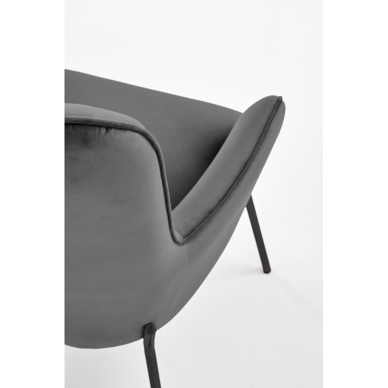 Fotel tapicerowany jest estetyczną tkaniną typu velvet. Ten wysokogatunkowy materiał nadaje powierzchni mebla wyjątkowej gładkości i miękkości, co sprawia, że siedzenie na nim jest bardzo przyjemne. Charakterystyczną cechą tkanin aksamitnych jest efekt delikatnego połyskiwania i zmieniania odcieni wraz z kątem patrzenia na nie, co można zaobserwować przy odpowiednim oświetleniu. Dodatkowo oparcie i siedzisko zostało upiększone efektownym pikowaniem, które dodaje uroku.