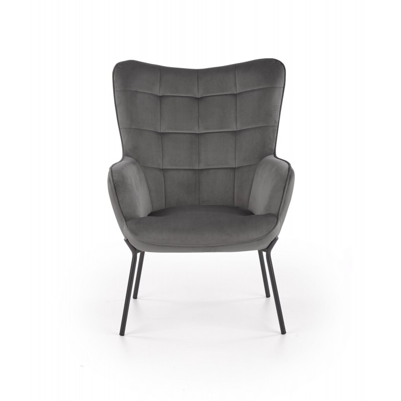 Fotel CASTEL czarny/popielaty BLUVEL 14 – nowoczesna elegancja z aksamitnym wykończeniem