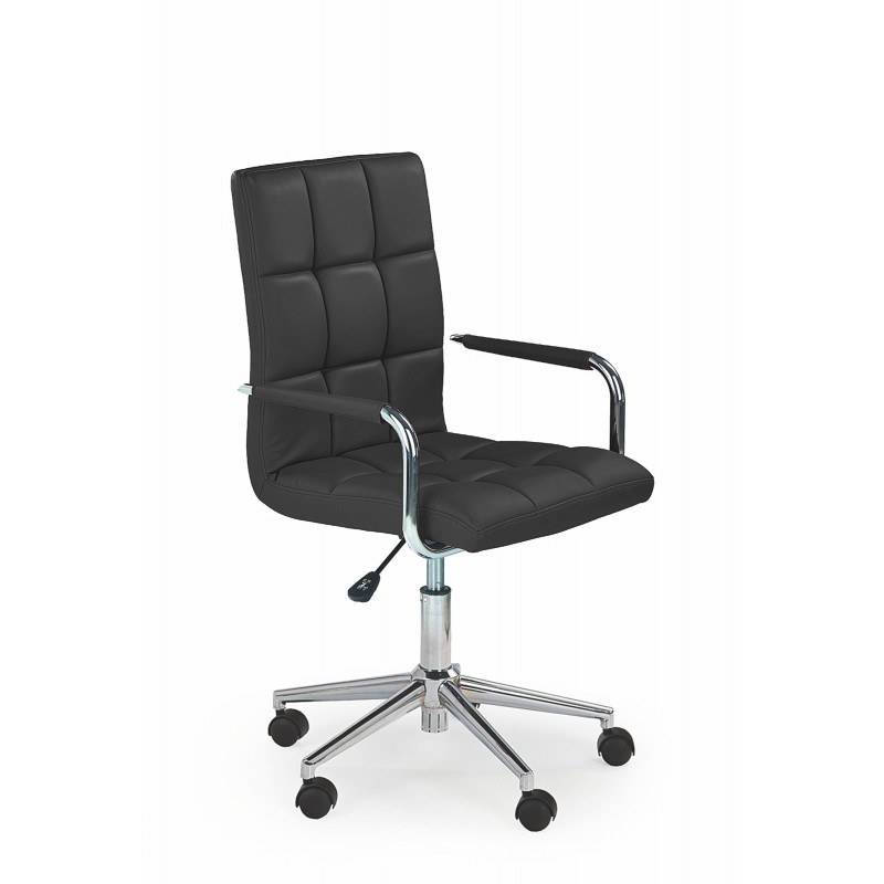 Fotel młodzieżowy GONZO 2 – klasyczna czerń, eko skóra i elegancka chromowana baza