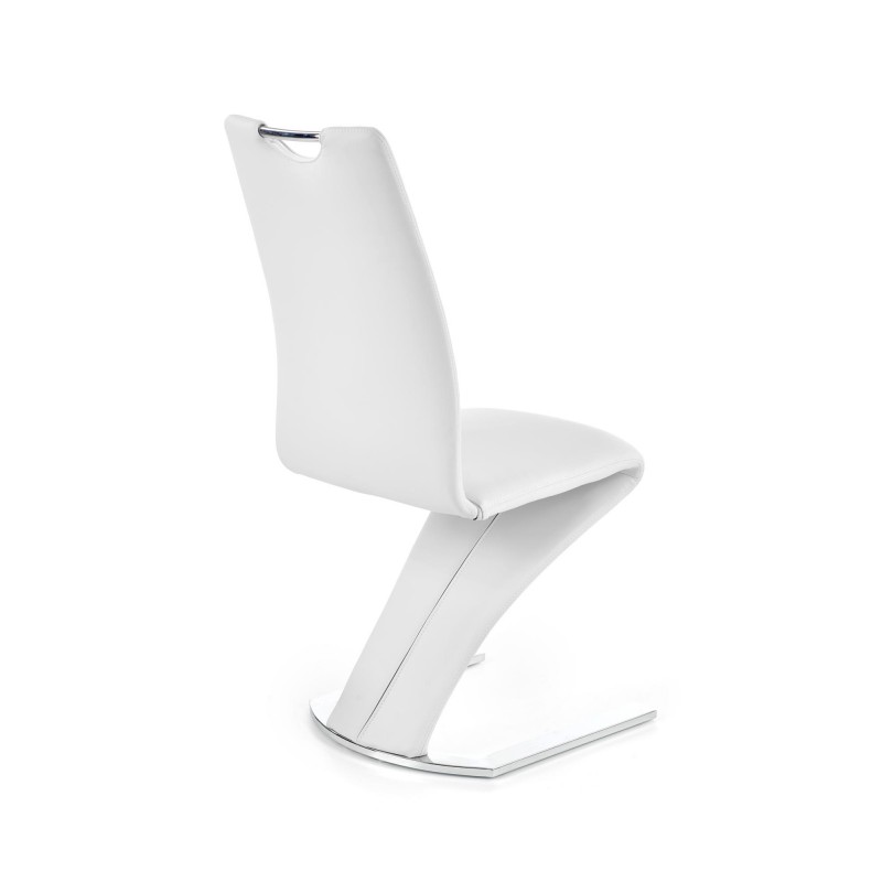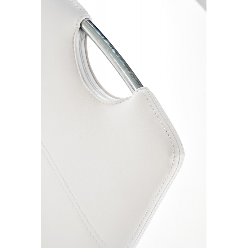 Krzesło K188 białe – eleganckie krzesło do jadalni i salonu. Tapicerowane wysokiej jakości eko-skórą w kolorze białym, z srebrnymi nogami – połączenie nowoczesnego designu z trwałością. Idealne do domowego stołu, restauracji czy gabinetu. Szerokie siedzisko i ergonomicznie wyprofilowane oparcie zapewniają komfort nawet podczas długich posiłków. Krzesło K188 to stylowy wybór dla osób ceniących sobie elegancję i funkcjonalność. Wykonane z metalowego stelaża i eko-skóry – łatwe w utrzymaniu czystości. Nowoczesny, minimalistyczny design pasuje zarówno do wnętrz skandynawskich, jak i glamour.