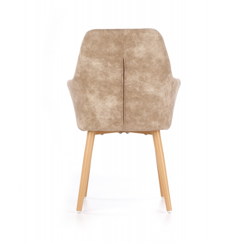 - Siedzisko i oparcie: Tapicerowane wysokiej jakości eko-skórą w kolorze beżowym – miękka i przyjemna w dotyku powierzchnia zapewnia komfort, a jednocześnie jest bardzo łatwa w czyszczeniu.