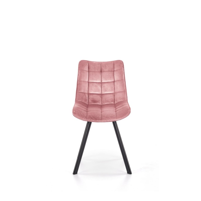 Krzesło K332 różowe to kwintesencja kobiecego stylu i elegancji. Miękki aksamitny velvet w delikatnym odcieniu tworzy efektowny duet z industrialną, czarną bazą z prostymi nogami. Szerokie siedzisko zapewnia wysoki komfort, a modny design dodaje wnętrzu romantycznego charakteru. Idealne do stylu glamour.