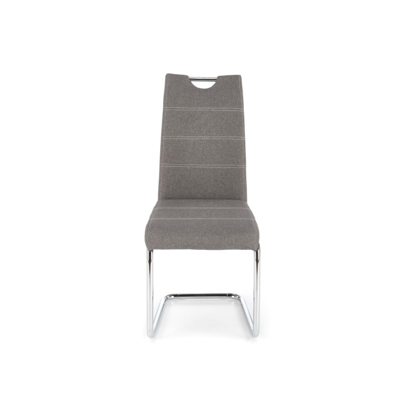 Krzesło K349 popiel to połączenie przytulnej tkaniny z eleganckim, chromowanym stelażem. Szerokie, miękkie siedzisko zapewnia wysoki komfort, a lśniące nogi dodają meblowi nowoczesnego blasku. Idealne rozwiązanie do jadalni, salonu czy biura w stylu nowoczesnym lub skandynawskim.