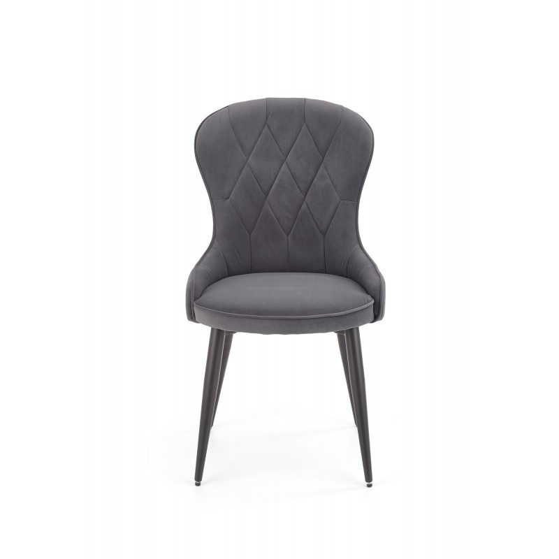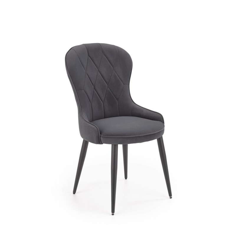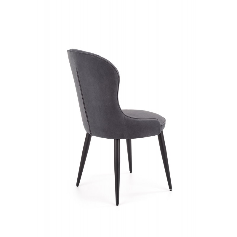 Krzesło K366 popiel to połączenie szlachetnego velvetu z elegancką, czarną bazą. Miękka tkanina w uniwersalnym odcieniu szarości zapewnia wysoki komfort, a proste nogi o okrągłym profilu dodają meblowi lekkości. Idealne rozwiązanie do jadalni lub salonu w stylu skandynawskim lub nowoczesnym, wprowadzające do wnętrza spokój i harmonię.