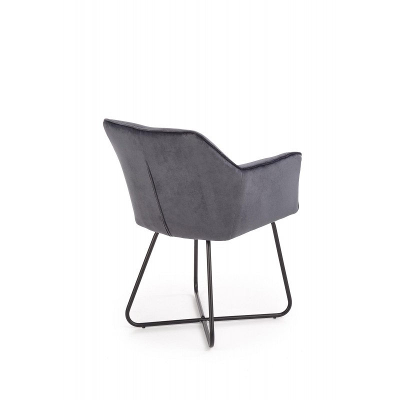 Krzesło K377 popiel to połączenie szlachetnego velvetu z nowoczesnym designem. Miękka, aksamitna tapicerka w uniwersalnym odcieniu szarości zapewnia wysoki komfort, a solidny, czarny stelaż metalowy dodaje meblowi elegancji. Idealne rozwiązanie do jadalni, salonu czy biura, łączące luksusową fakturę z praktycznością.