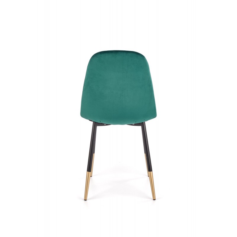Krzesło K379 zielone to połączenie energii koloru z eleganckim blaskiem. Miękki velvet (HLR 57) kontrastuje z czarnymi nogami ze złotymi końcówkami, tworząc efektowny mebel w stylu glamour. Szerokie siedzisko zapewnia wysoki komfort, a unikalny design dodaje wnętrzu luksusowego charakteru. Idealne do jadalni lub salonu.