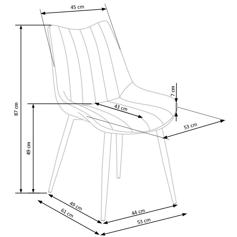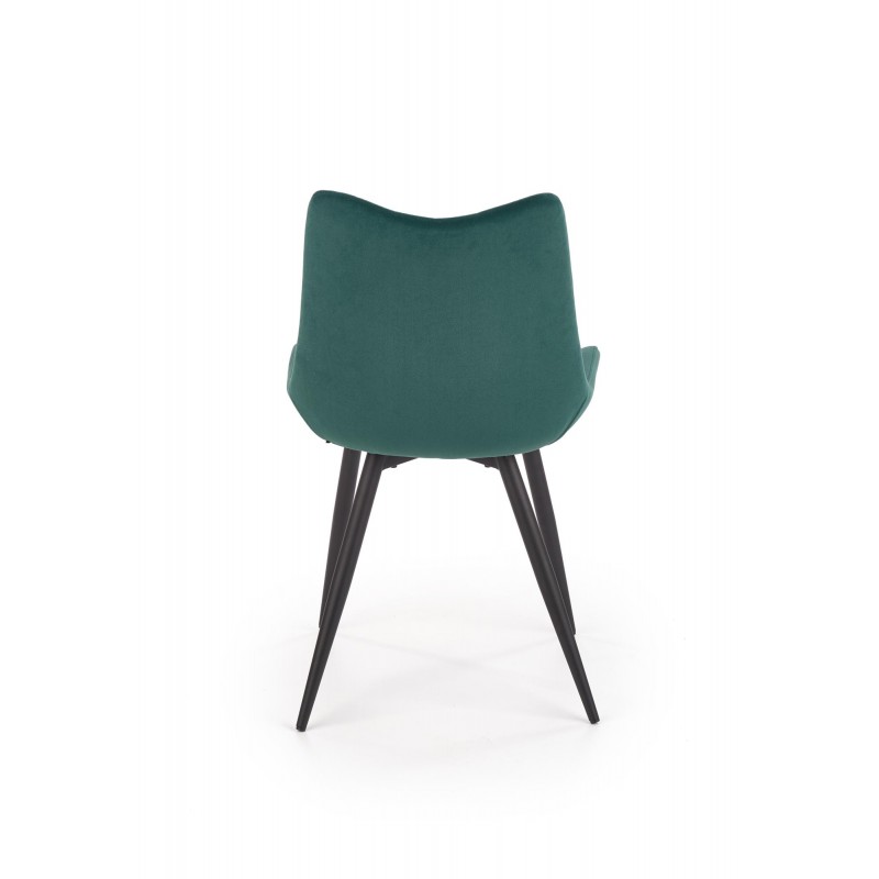 Oryginalna krzesło o niebanalnym designie. Tapicerowane miękką tkaniną typu velvet. Krzesło będzie piękną ozdobą wnętrza oraz wygodnym miejscem odpoczynku. Nogi w kolorze czarnym idealnie współgrają z odcieniami tapicerki tworząc niezwykle spójną stylistycznie całość, która zachwyca od pierwszego spojrzenia.
