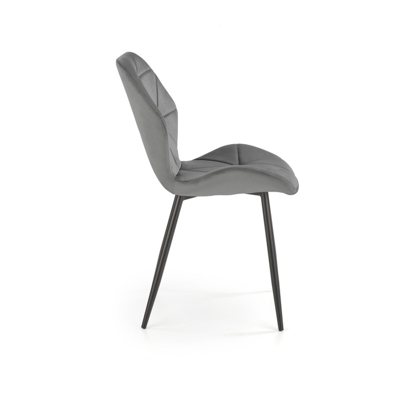Krzesło K453 popielaty to połączenie eleganckiego, aksamitnego velvetu (BLUVEL 14) z minimalistyczną, czarną podstawą metalową. Neutralny odcień popielatu wprowadza do wnętrza spokój i harmonię, a solidny, czarny stelaż zapewnia stabilność i nowoczesny wygląd. Idealne rozwiązanie do jadalni, salonu czy gabinetu w stylu nowoczesnym, skandynawskim i loftowym.