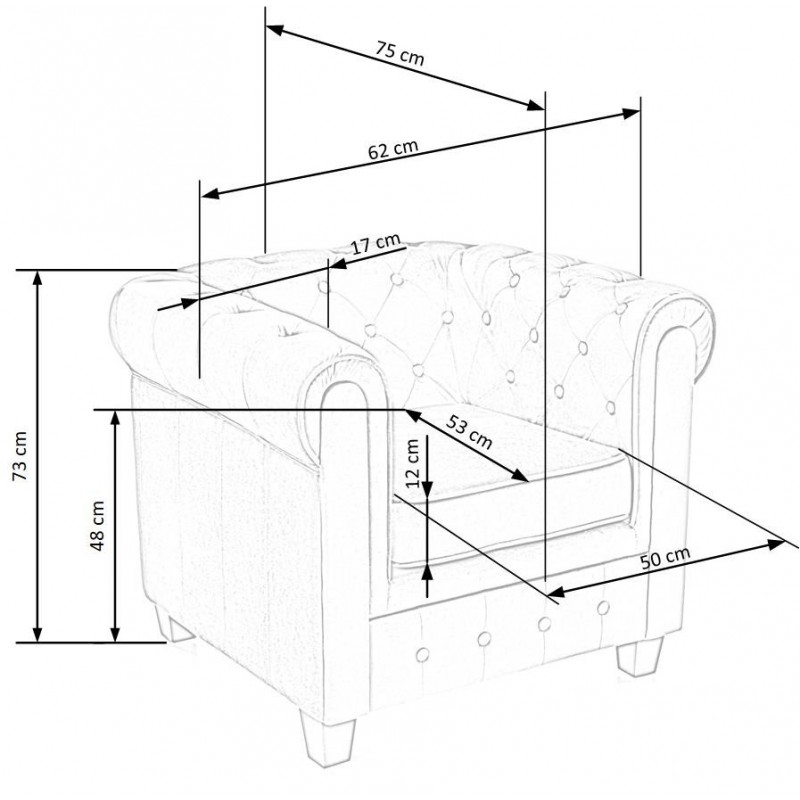 Fotel tapicerowany jest estetyczną tkaniną typu velvet. Ten wysokogatunkowy materiał nadaje powierzchni mebla wyjątkowej gładkości i miękkości, co sprawia, że siedzenie na nim jest bardzo przyjemne. Dodatkowo oparcie i siedzisko zostało upiększone efektownym pikowaniem, które dodaje uroku.