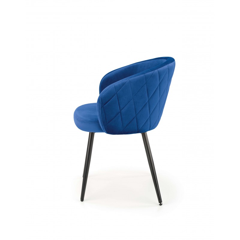 Szukasz mebla, który wprowadzi do wnętrza głębię i elegancję? Krzesło K430 w kolorze granatowym to idealny wybór. Głęboki odcień aksamitnego velvetu (HLR 69) w połączeniu z minimalistyczną, czarną bazą tworzy kompozycję pełną klasy, która doskonale wpisuje się w eleganckie aranżacje.