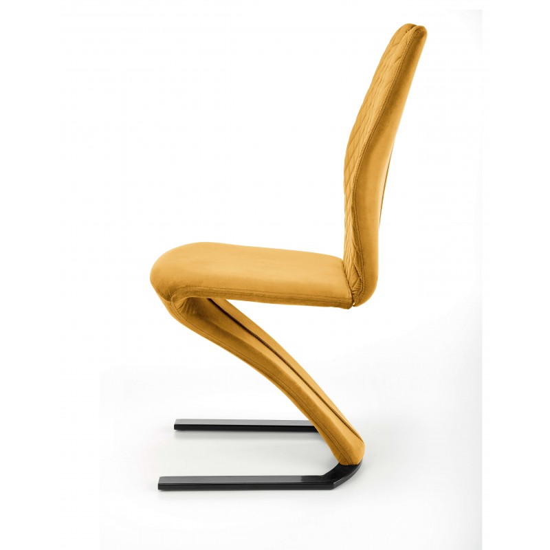 Krzesło K442 w musztardowym kolorze to odważny akcent w każdym wnętrzu. Ciepły, słoneczny odcień tkaniny velvet BLUVEL 68 o subtelnym połysku przyciąga wzrok i ożywia przestrzeń. Metalowy stelaż malowany proszkowo z płozami zapewnia stabilność i nowoczesny charakter.