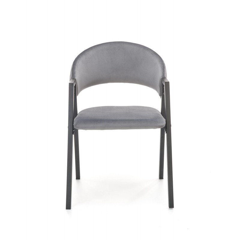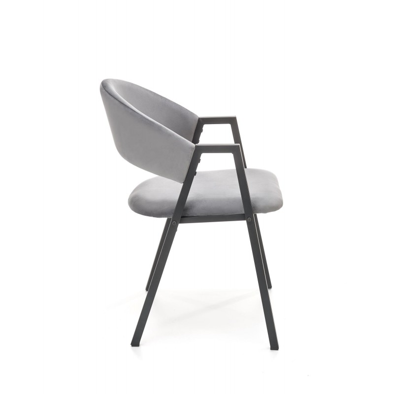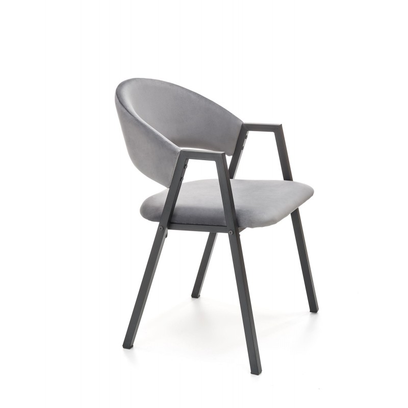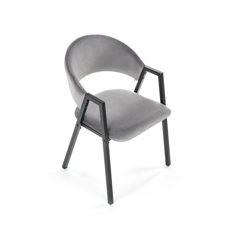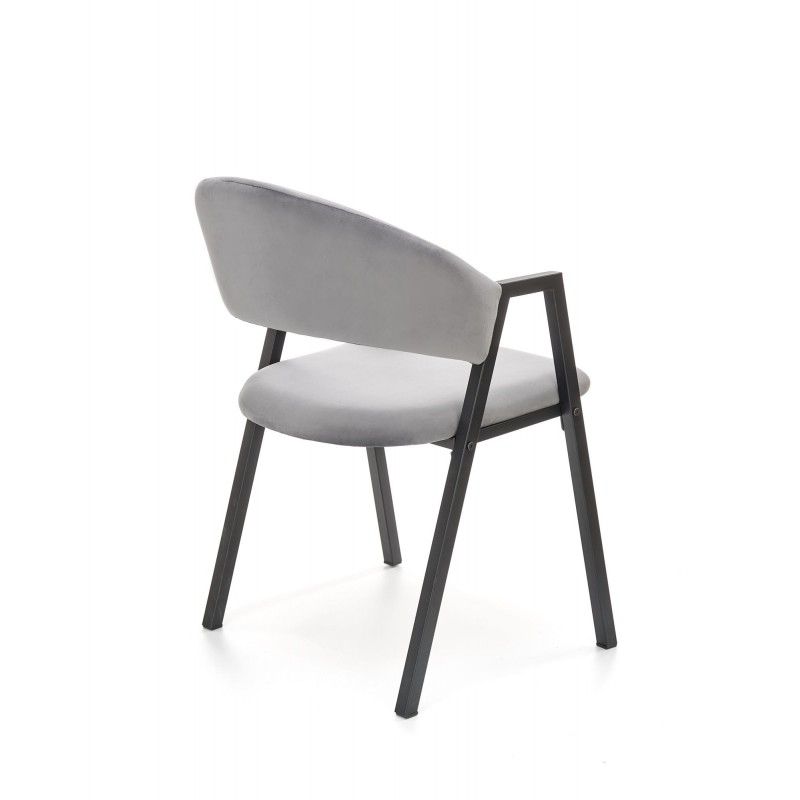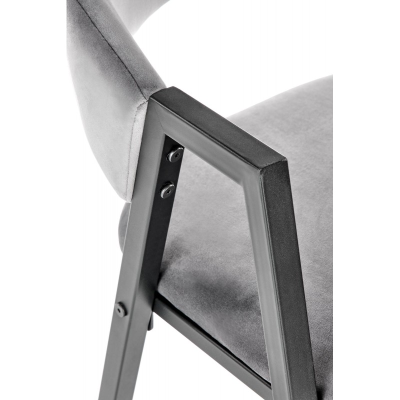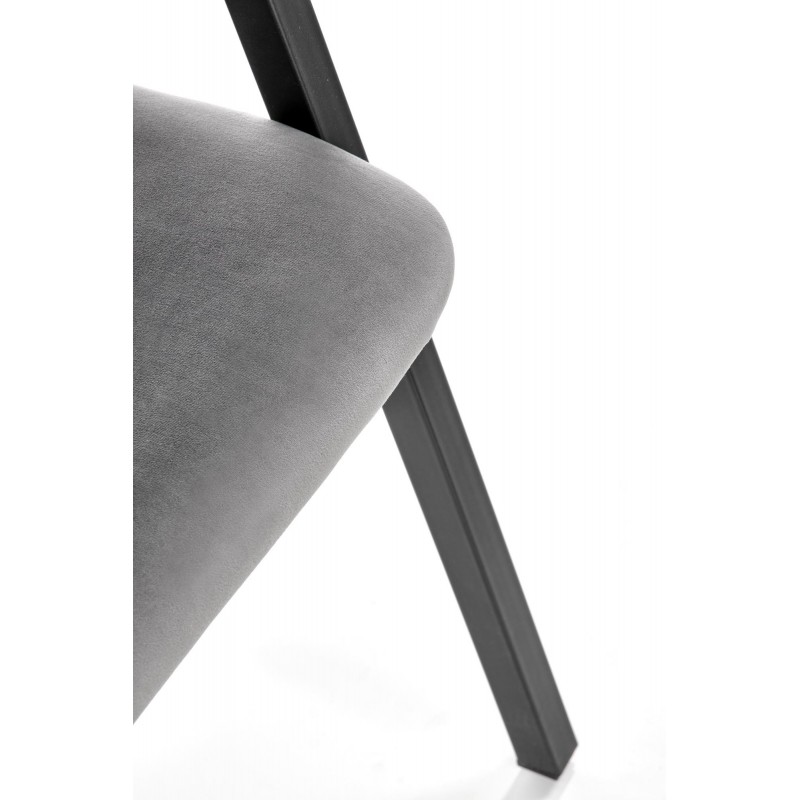 Krzesło K473 w popielatym kolorze to kwintesencja uniwersalnej elegancji i loftowego stylu. Szlachetny odcień tkaniny velvet o subtelnym połysku w połączeniu z czarnym metalowym stelażem tworzy mebel pasujący do każdej aranżacji. Proste nogi w przekroju prostokątnym podkreślają nowoczesny, industrialny charakter.