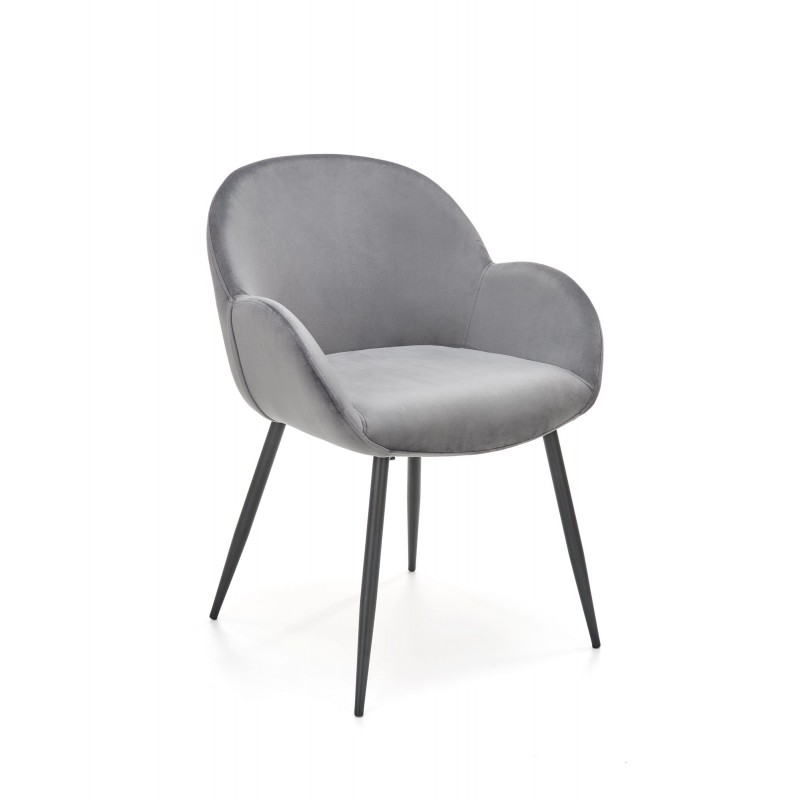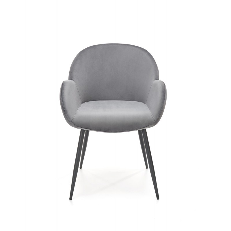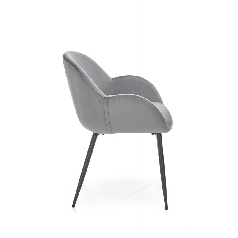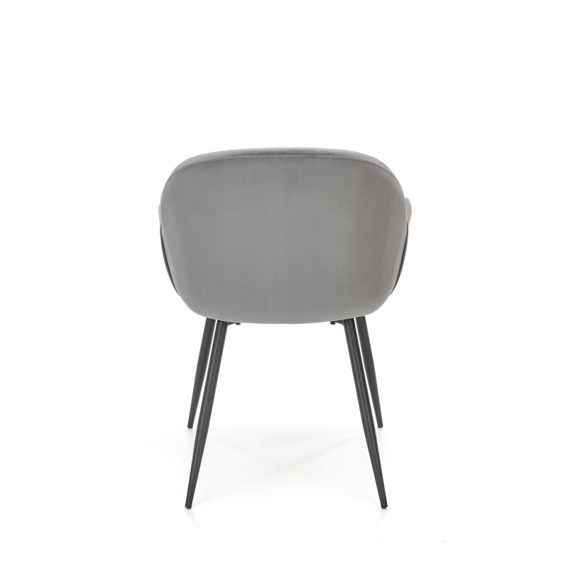 Krzesło K480 w popielatym kolorze HLR 21 to kwintesencja uniwersalnej elegancji i nowoczesnego stylu. Szlachetny odcień tkaniny velvet HLR 21 o subtelnym połysku w połączeniu z czarnym metalowym stelażem tworzy mebel pasujący do każdej aranżacji. Proste nogi o okrągłym profilu podkreślają minimalistyczny charakter.