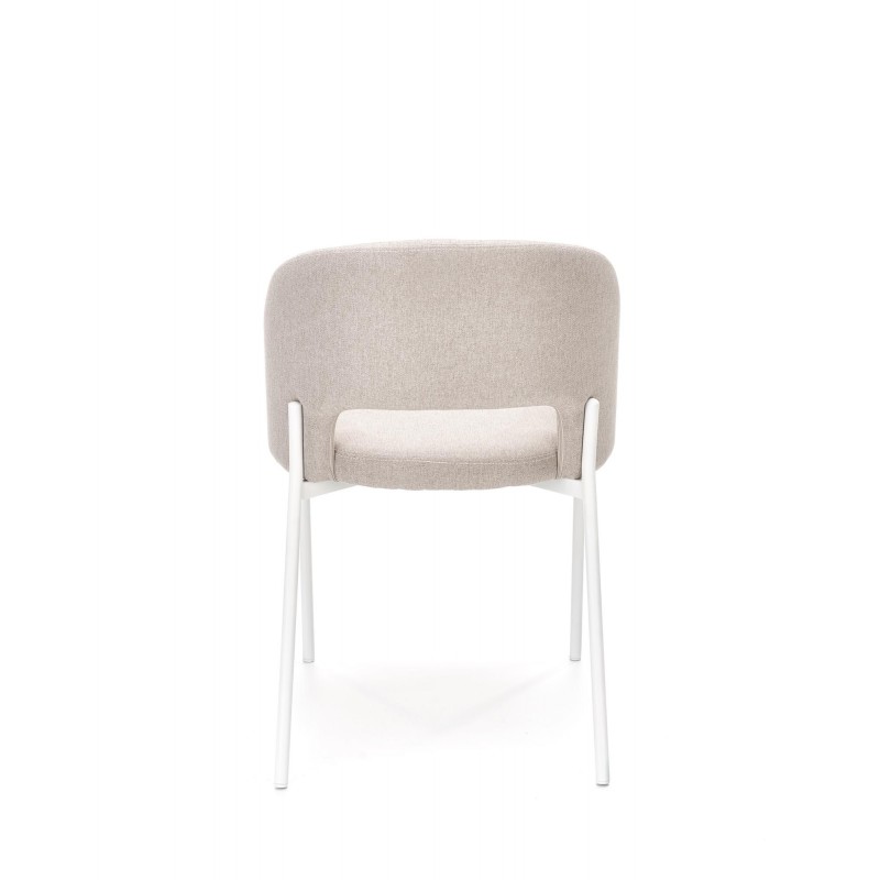Krzesło K486 w beżowym kolorze z białą podstawą to idealne połączenie klasycznej elegancji z nowoczesną świeżością. Ciepły odcień beżowej tkaniny w zestawieniu z białym metalowym stelażem tworzy jasny, harmonijny mebel idealny do skandynawskich wnętrz. Proste nogi o okrągłym profilu nadają krzesłu lekkości.