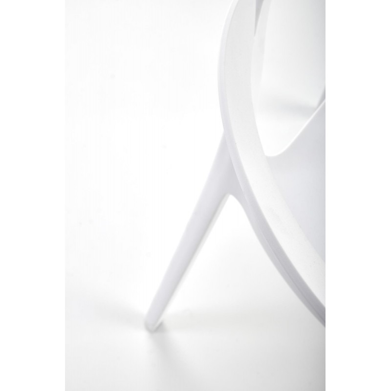 - Siedzisko i oparcie: Wykonane w całości z wysokiej jakości polipropylenu w białym kolorze – siedzisko twarde bez tapicerki, łatwe w utrzymaniu czystości, odporne na wilgoć i zabrudzenia.